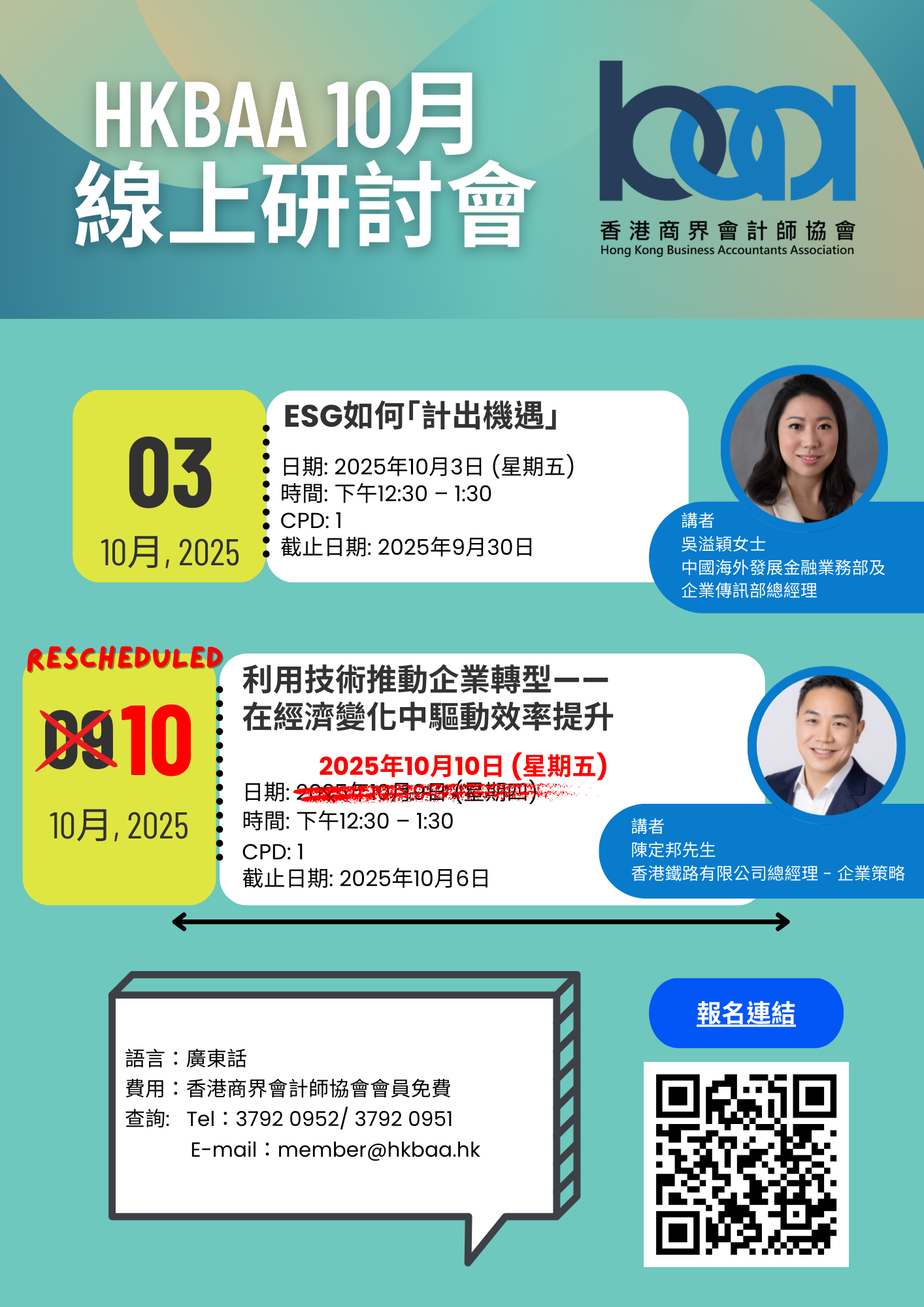 香港商界會計師協會(HKBAA)將於十月舉辦以下線上研討會,屆時將深入探討行業最新趨勢及最佳實踐。