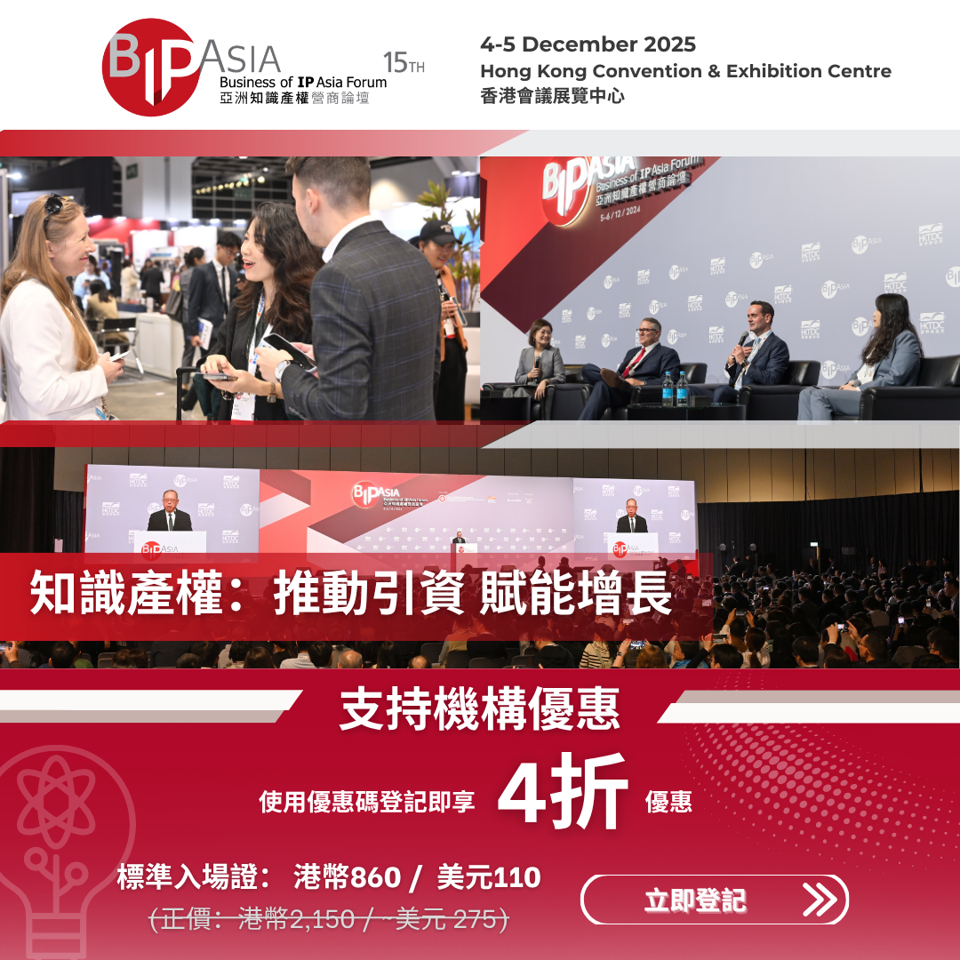 The 15th edition of BIP Asia Forum will be held on 4-5 December 2025 at the Hong Kong Convention and Exhibition Centre. Themed “Leverage IP To Finance Business Growth”, the upcoming edition will discuss how businesses can enhance their competitive advantage, attract investment, and unlock new avenues for sustainable growth by strategically leveraging IP.