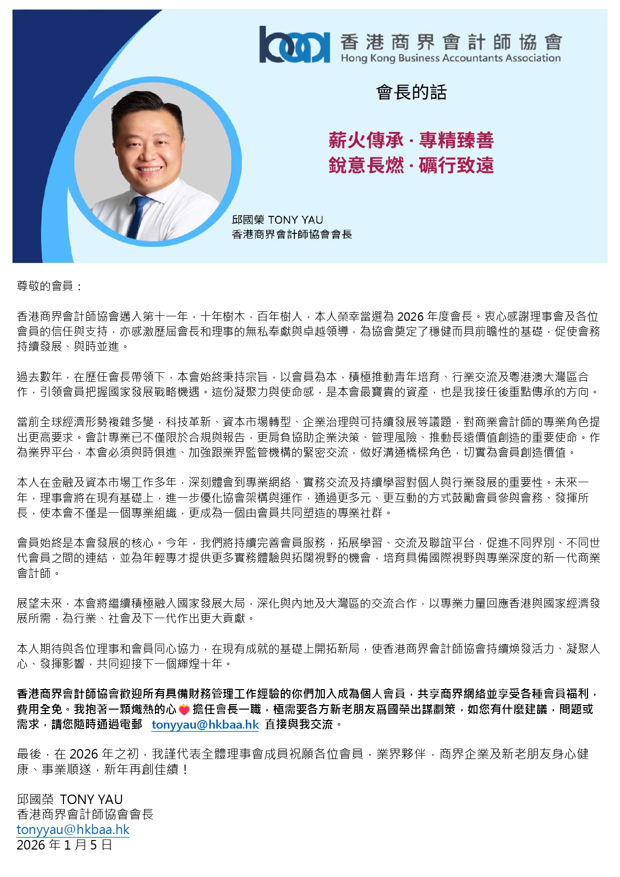 香港商界會計師協會 - 會長的話