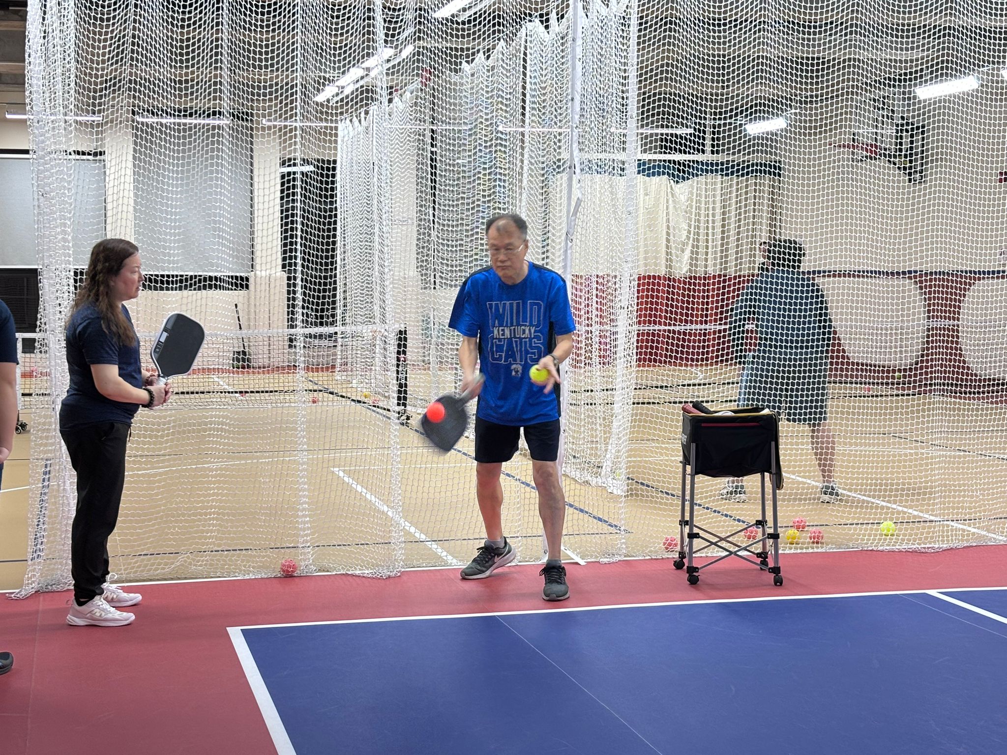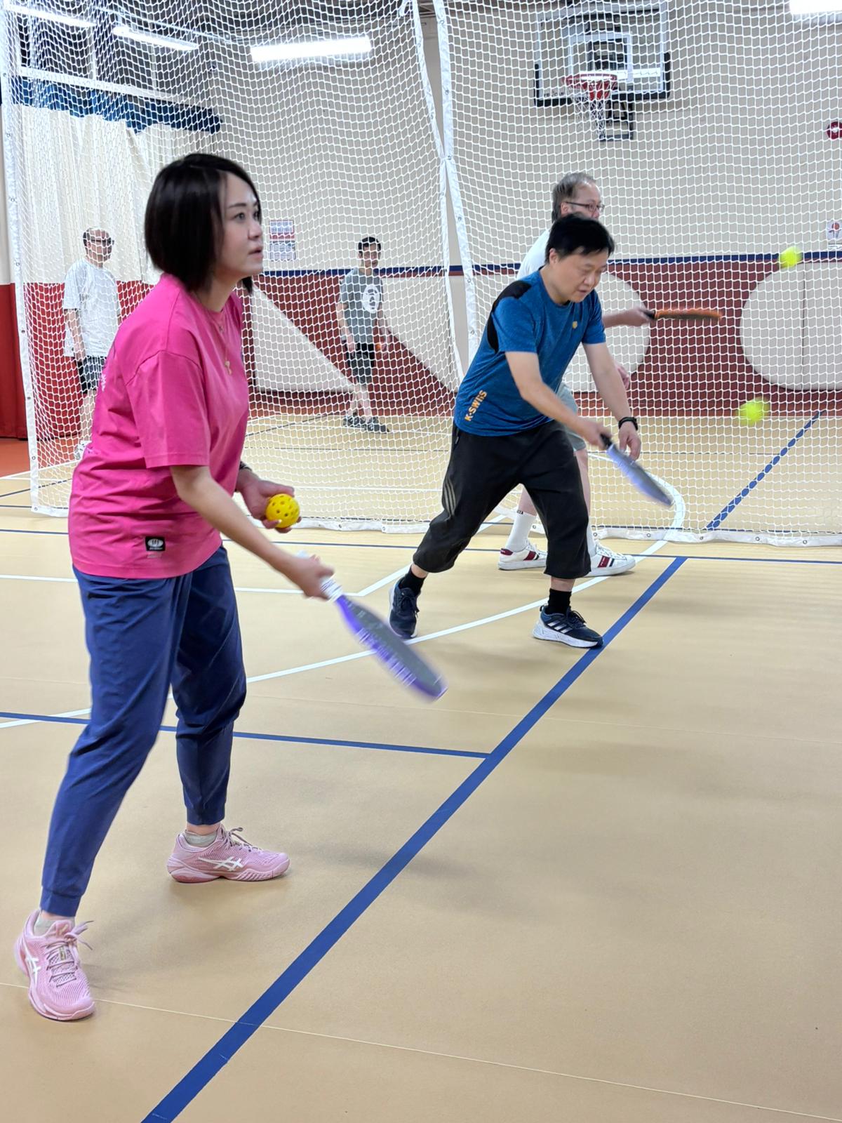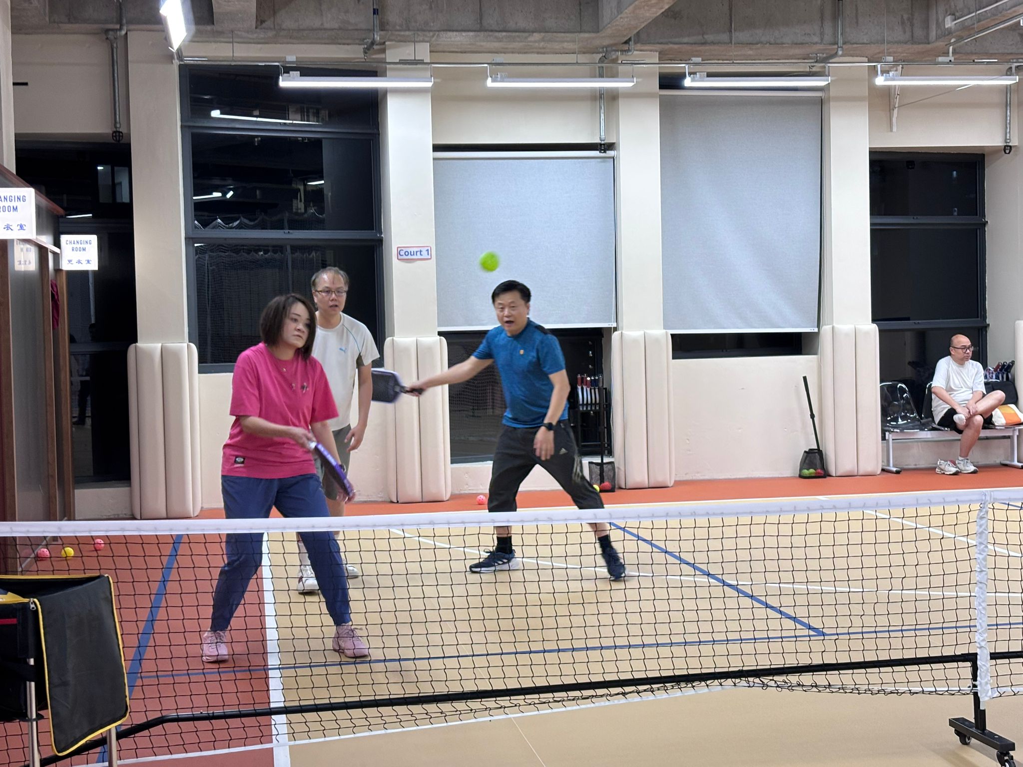 活動當日反應非常熱烈,會員們齊聚專業場館,一同體驗這項近年備受歡迎的新興運動。現場氣氛輕鬆愉快,大家盡情揮拍、互相切磋,歡笑聲此起彼落。在運動中暫時放下繁忙工作的壓力,盡情享受流汗與投入的樂趣,場面熱鬧又溫馨。